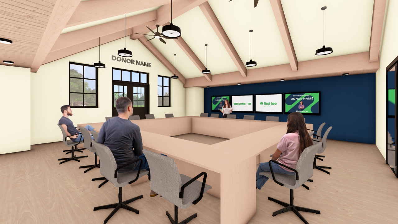 thoughtfully included in the design to adapt to the ever-evolving needs of First Tee – Jersey Shore. The room features modern communications technology to support meetings, presentations and class delivery. Whether it’s hosting Board meetings, coach trainings, special classes, community events, or donor gatherings the versatile space will serve